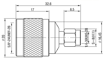 Mating - N: 5/8-24UNEF-2B,SMA:1/4-36UNS-2B